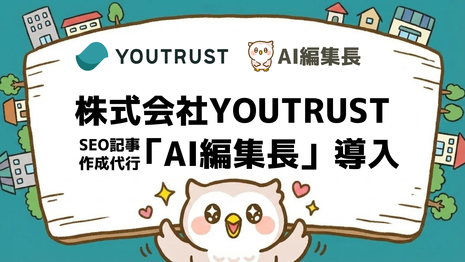 株式会社viviane(本社:東京都渋谷区、代表取締役:田辺大樹)が運営・開発する、SEO記事作成のAIエージェントである「AI編集長」が、日本のキャリアSNSおよびネットワークリクルーティングサービスの「YOUTRUST」を開発・運営する株式会社YOUTRUST(本社:東京都渋谷区、代表取締役社長:岩崎由夏)に導入されたことをお知らせします。